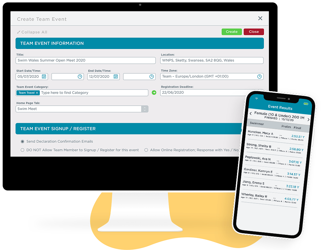 Integrated with USA Swimming’s SWIMS 3.0 database.